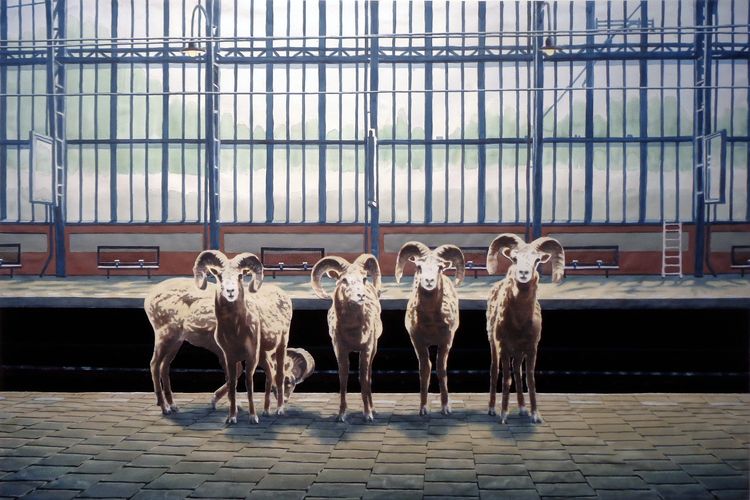 Under the Radar, varnished watercolor on paper on canvas, 51" x 60"